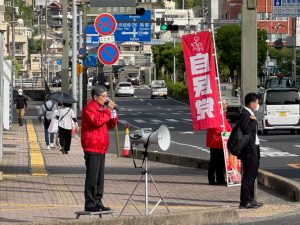 朝街頭演説を行いました。朝にも関わらずかなり日差しが強く汗ばむほどでした。政府より提出となった国民年金法改正案、複合防衛拠点構想などにつき申し述べさせて頂きました。今後とも各地で行いますので見かけましたら声掛けなど宜しくお願い致します。