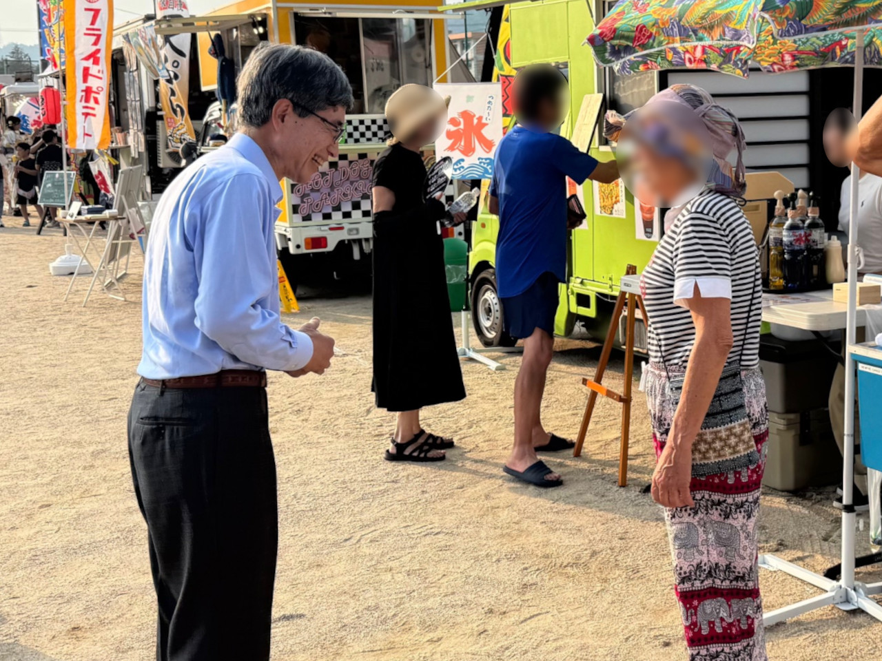盛夏の中夏まつりが開かれました。ミスト散布など暑さ対策を施し実施されました。帰省者も含め又近隣から来た人々も含め多くの来場者で賑わいました。地元の出店では地元ならではの食べ物も提供されました。地域発の取り組みを応援してまいります。