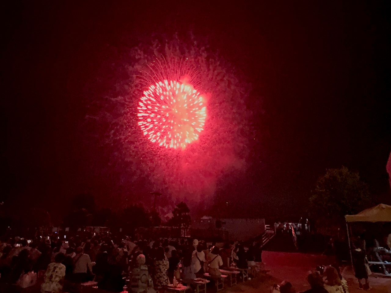道の駅福富でしゃくなげ湖をバックに2千発の花火が打ち上がりました。安全対策を十分施しての大会実施で、皆さん大輪の花火を楽しんでいました。まだ残暑厳しい中でしたが一服の涼をとることができました。主催者はじめお世話頂きました方々に感謝申し上げます。