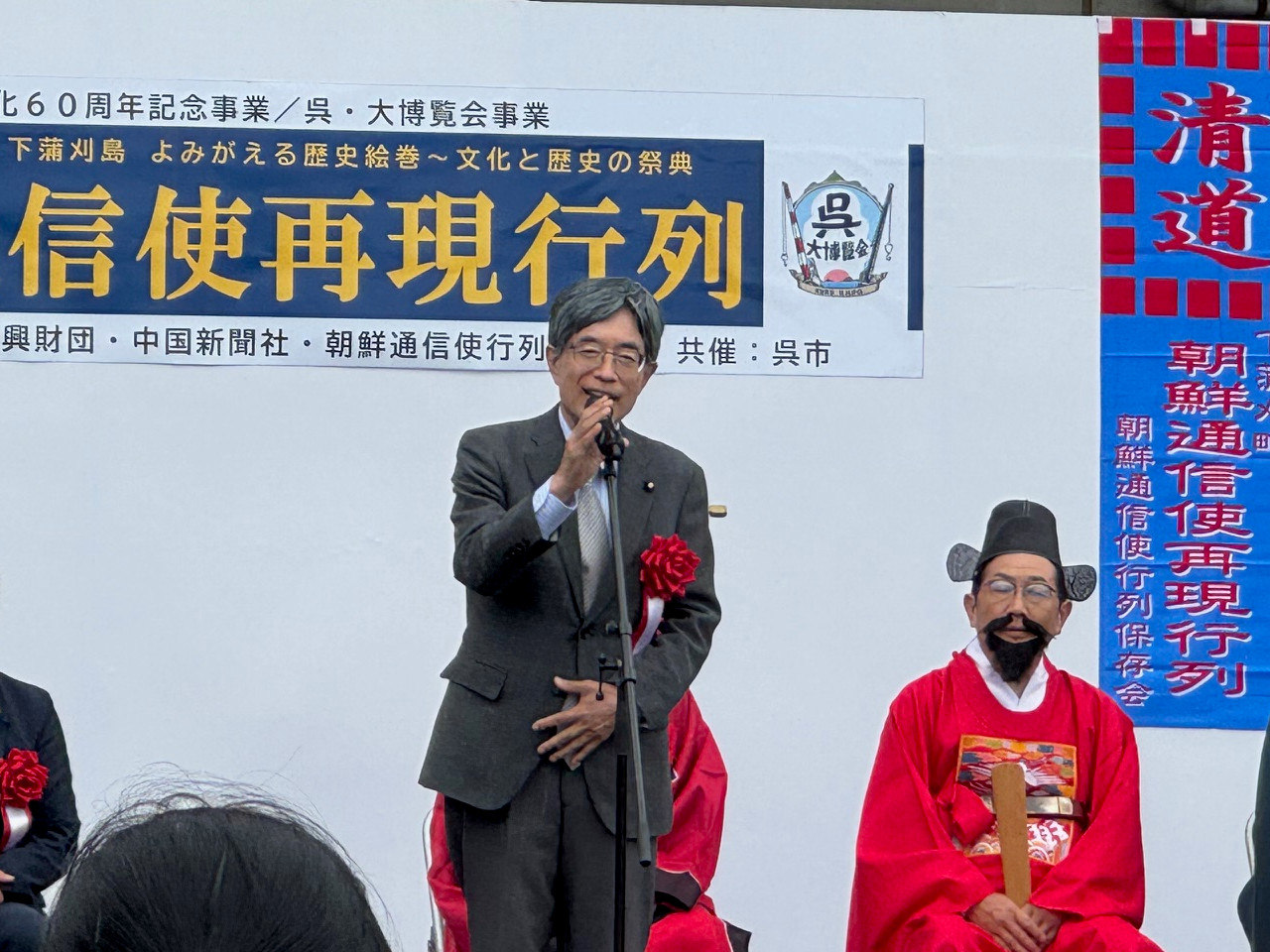 地元の下蒲刈で恒例の朝鮮通信使再現行列が行われました。ユネスコの世界記憶遺産に認定され10年が経ちました。我が国の世界遺産で日韓共同申請し認定後の運営も両国間で行っている唯一の例です。今後も日韓友好親善の輪を広げてまいります。