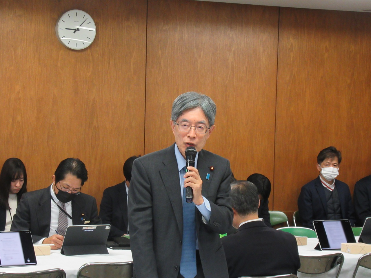 原子力規制に関する特別委員会で私より規制委員会に原発事故の甚大さに鑑み安全基準に則った工法で慎重に原発及び原発周辺の作業をすすめてほしい旨発言し先方より事業者とも十分な対話、連携の上安全を期して作業をすすめるとの答弁がありました。これから福島第一原発では「核のゴミ(デブリ)除去という大変な作業が待ち受けています。2051年までの廃炉に向けて政府・与党一体となり着実に作業をすすめてまいります。